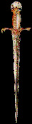 The Tuchuks are a warrior society. Much like the Plains Indians of Earth, Tuchuk parents expect mastery of weapons and mount from their sons even before granting a name. Without this Mastery, a Male Tuchuk cannot earn the Red Courage Scar, with all the ramifications of not achieving Manhood that that entails. The weapons of the Tuchuk are those most readily usable from kaillaback, such as the horn bow, the lance, the bola, and the quiva. The Tuchuk feels the sword is awkward from the back of the kailla, and so it is seldom used, and in general must be learned elsewhere. Additionally, tharlarion cavalry, such as that of Turia, is generally not reachable by sword, while the bow and the lance are quite adequate for the task. The Bola The bola is a weapon peculiar to the Wagon Peoples. Tarl Cabot describes it thus: "It consists of three long straps of leather, each terminating in a leather sack which contains, sewn inside, a heavy, round, metal weight. It was probably developed for hunting the tumit, a huge, flightless carnivorous bird of the plains, but the Wagon Peoples use it also, and well, as a weapon of war. The bola is generally thrown low and hard, aiming to entangle and possibly break the victim's legs. With its ten-foot sweep, and the swiftness of the throw, it is almost impossible to evade. The leather straps strike the victim and immediately tangle around the legs, the weight of the metal balls pulling the leather tight. The force is such that the victim's legs can actually be broken by the clinch of the straps. Once entangled, the victim is easily captured or dispatched by the Tuchuk Warrior. Of course, the Warrior can also aim to strap arms to sides, or to crush the windpipe, or to wrap the head, using the stones in the last instance to strike the victim's skull, thereby ending his life." The Lance The lances of the Tuchuk are black and are made of the wood of young tem trees. They are so supple that they can be bent almost double without breaking. A mounted warrior holds the lance lightly in his fist, using a loop of bosk hide to strap it securely to his hand. It is used like a saber in hand-to-hand combat, and can be handled very deftly. Tuchuks seldom throw their lances, but do carry three or four. They are used for short thrusts, not for long charges at full tilt, and are never couched against the saddle. When not in use, they are carried on the warrior's back in their own quiver. The Quiva